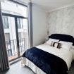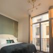 La luz natural envuelve cada estancia a través de cuatro esbeltos ventanales con balcón.